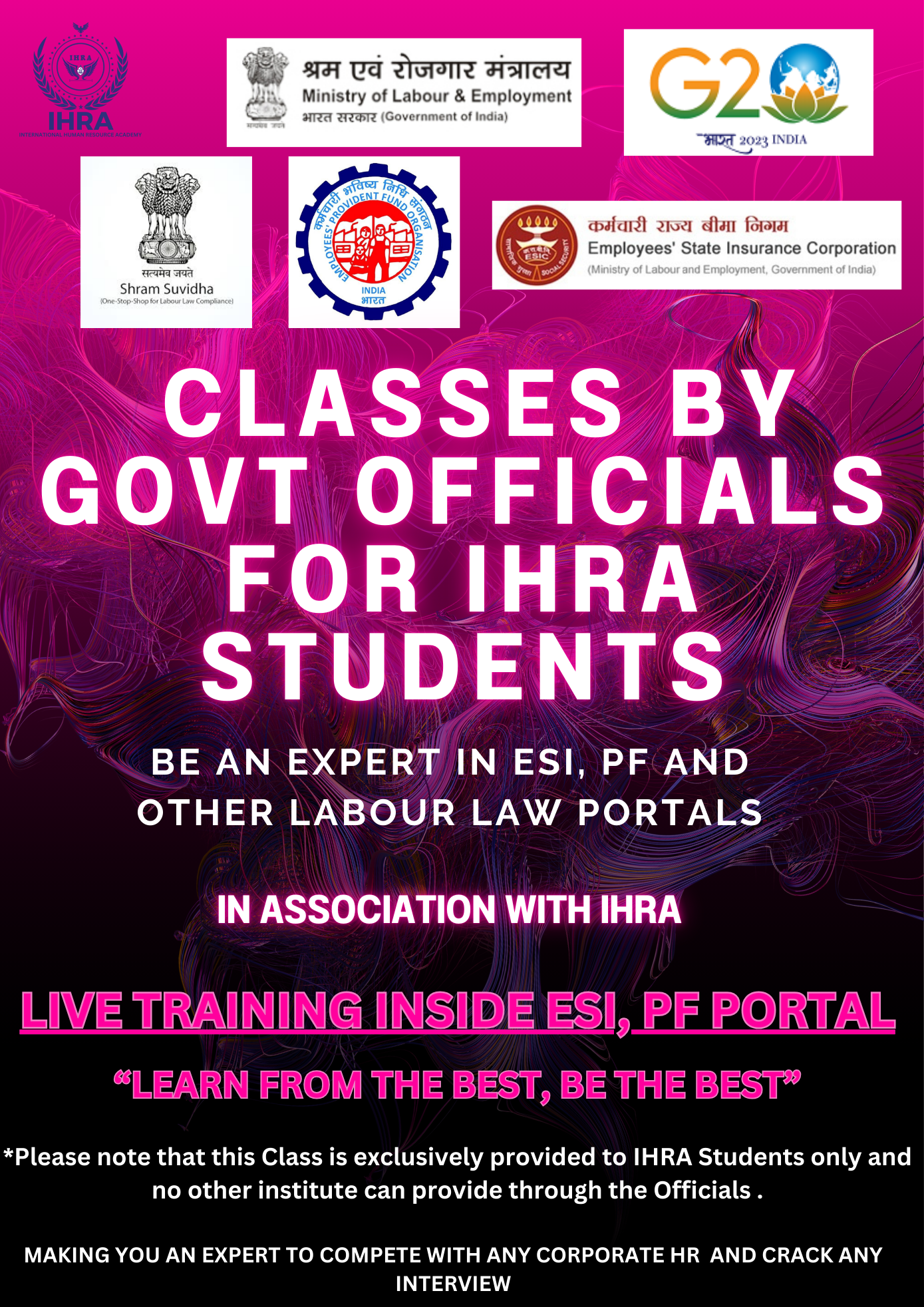 IHRA is an Internationally Accredited and Govt of India Approved HR Training Institute affiliated and powered by Jain Deemed to Be University. We are the only HR Training Institute in India providing comprehensive HR Training covering all HR Modules, HR Softwares, Artificial Intelligence and Google Hacking for HR. We make sure to hold your hand until you reach your career goal, for sure.