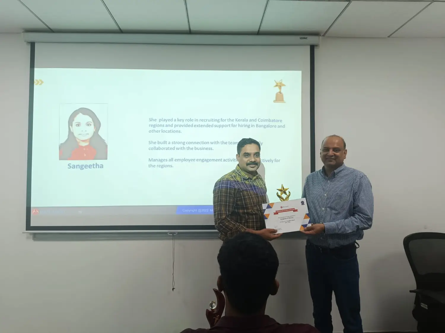 Sangeetha is awarded the Best Employee of the Year 2022 (PAN India) and the award was collected by her Team Manager on behalf of her.
